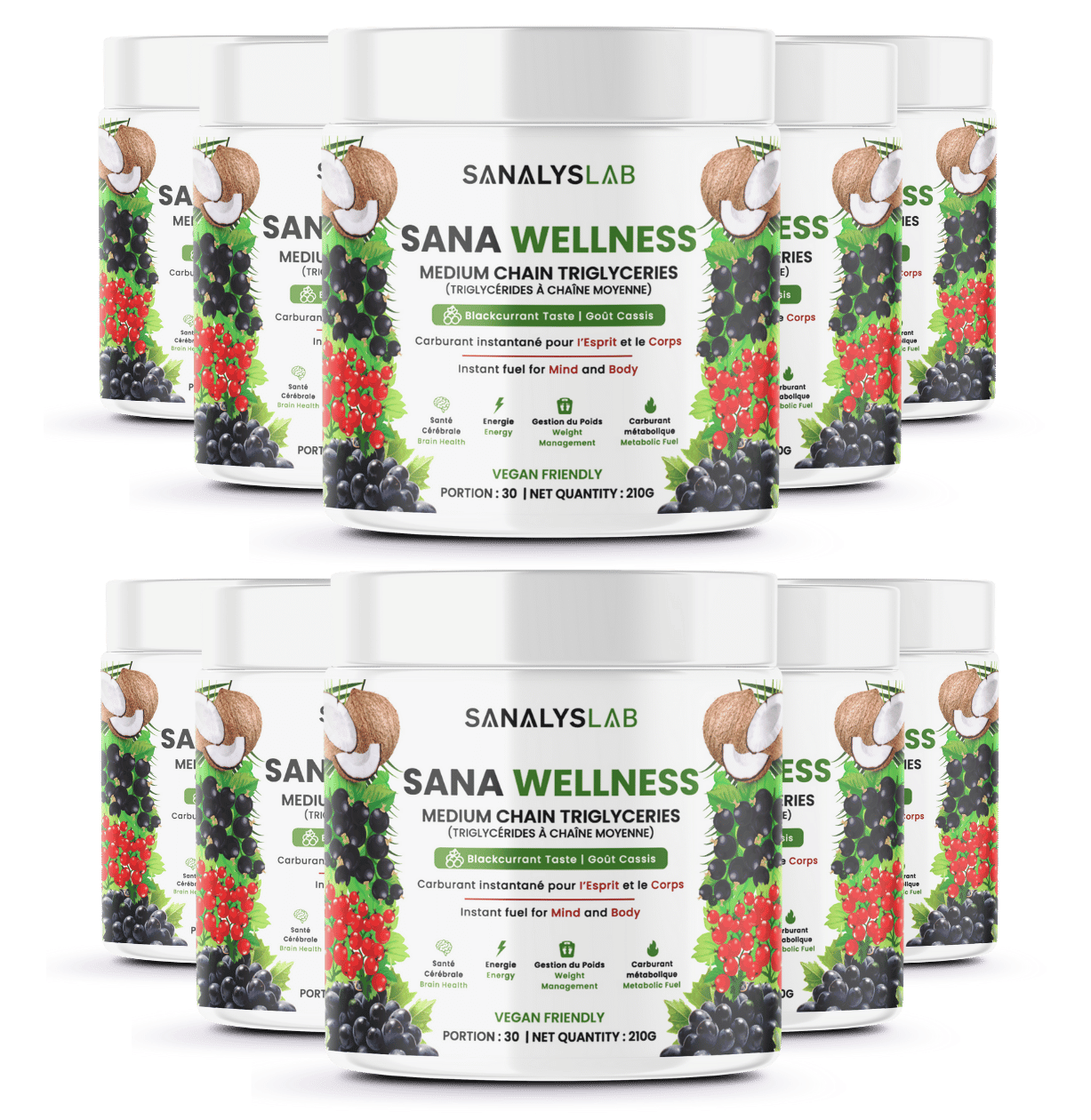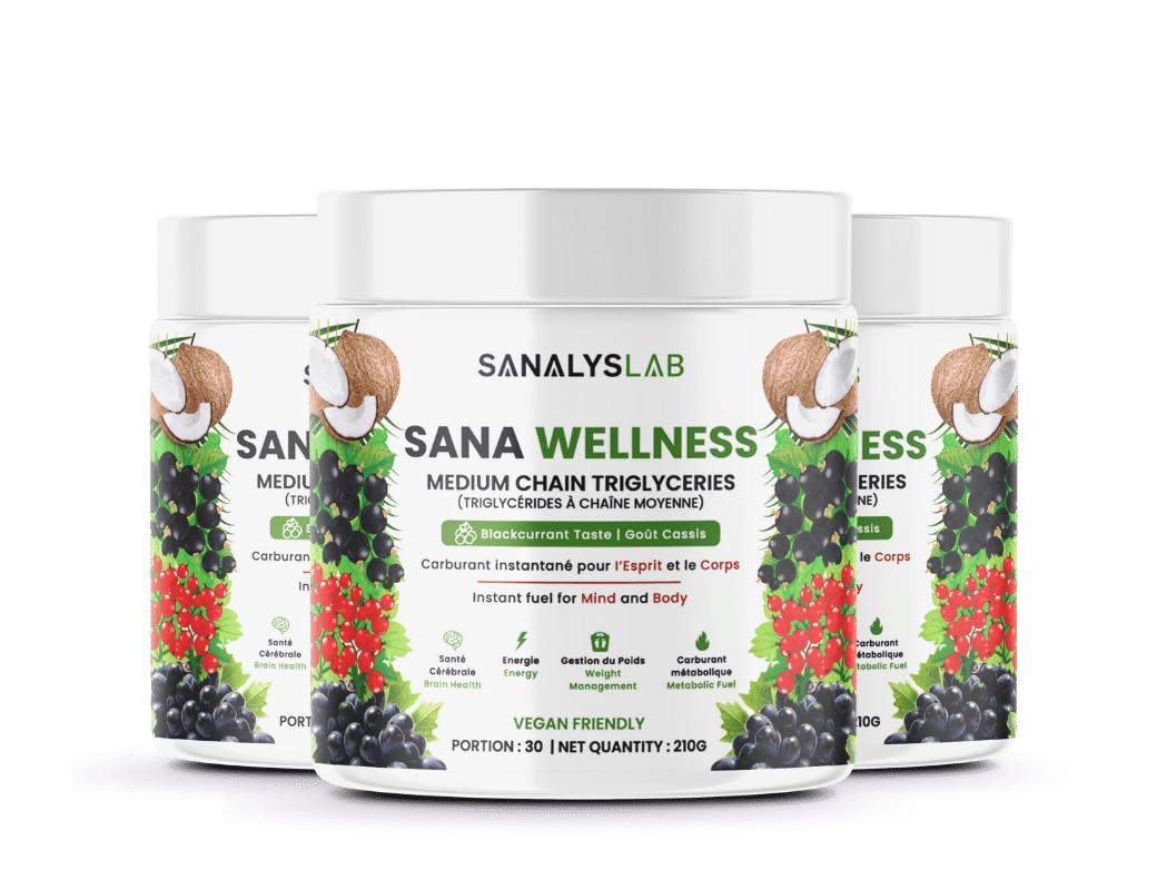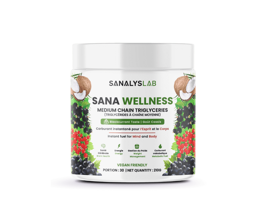La poudre d’huile de TCM contenue dans SanaWellness joue un rôle clé dans la stimulation du métabolisme et la promotion de la perte de poids. Les TCM (Triglycérides à Chaîne Moyenne) sont rapidement absorbés et transformés en énergie, aidant à brûler les graisses plus efficacement. En favorisant la thermogenèse et une satiété prolongée, SanaWellness vous aide à contrôler les fringales et à maintenir un poids santé*.